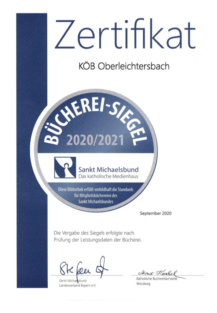Im September 2020 wurde unserer Bücherei vom Sankt Michaelsbund das Bücherei-Siegel ausgestellt.